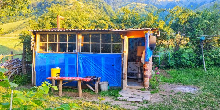 Ev deyəndə kiçik bir eyvanı olan, içində bir metr yüksəklikdə taxtı və stol, qab-qacaq şkafından ibarət kərpicdən hörmə balaca bir evcik deyək. Çobanlar veş üçün düşəndə burada yemək yeyir, ardınca yenə bağlayıb gedirlər. Hər fermanın belə bir evi var. Arxasında çay, qarsında sıx meşəli təpə var. Pənahla (əmimoğlu, həm də ev sahibi) birgə hansı yemək olduğunu düşünmədiyimiz(günorta olmamışdı hələ) yeyib, biraz daha yuxarı, tarixi köhnə Suvagilin qalıqları olan yerlərə yollandıq.