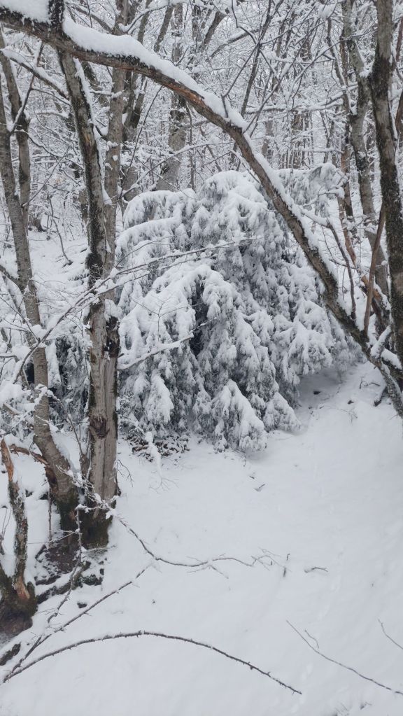 Açıqlığa çıxanda həm hava nisbətən daha aydın idi, həm də yamacın dikliyi aşağıdakı kimi sərt deyildi. Ancaq burada qar daha qalın idi. Üstəlik duman da daha qatı. Aşağıda çiçək açan zoğalla qarın davası gedirdi. Zoğal mənim vaxtımdır deyib üsyan edir, qar isə nə olar bir az daha qalım deyə əl-ayağa düşüb. 2 ay sonra buranın yamyaşıl olacağını düşünəndə Sübhanallah dedim. Bizə adi gələn şeylər, əslində necə də möhtəşəm bir nizam içindədirlər.